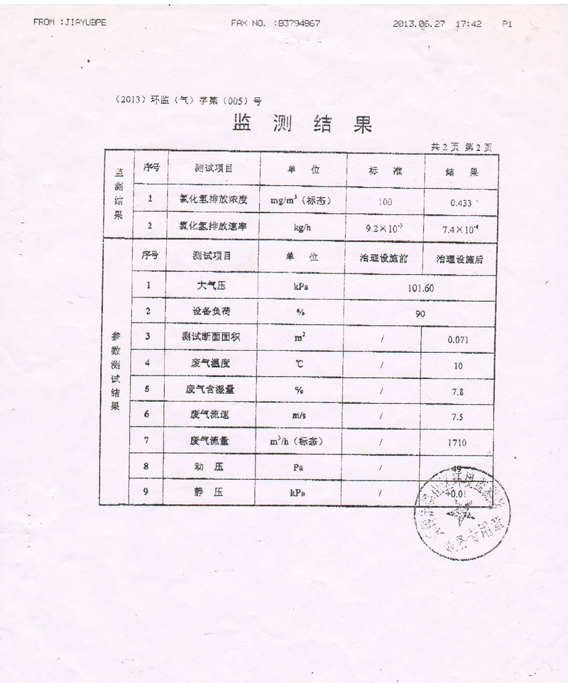 我們為每位客戶提供酸霧設備的專業氣體檢測,每個客戶的檢測結果都大大低于國家標準和地方標準。